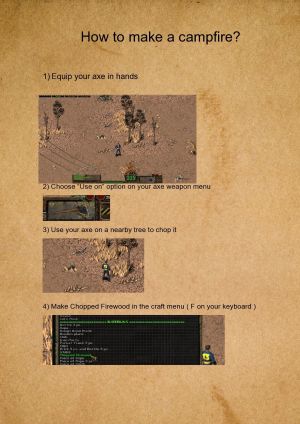 NOTE: in the guide "How to make campfire?" made by Commissar Vinet you can find mechanics explanation. Nowadays you can simply "use" log source with proper tool in your active slot